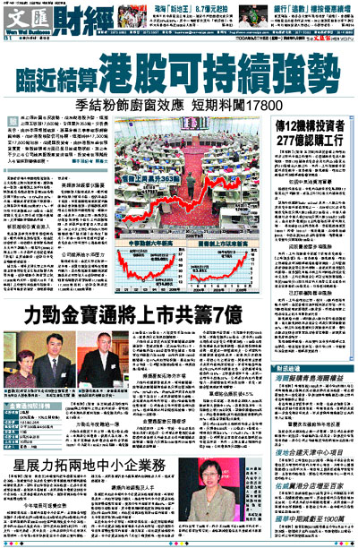 雖然上周外圍市況波動,但無礙港股升勢,恆指上周五收報17,600點,全周累升363點。分析員表示,由於本周期指結算,兼基金第三季季結粉飾廚窗效應,估計港股強勢仍可持續,恆指將於17,300點至17,800點徘徊,但提醒投資者,由於港股無論在現貨買賣、新股認購等方面已呈日益熾熱狀態,加上有不少上市公司趁高配股集資或套現,投資者在現階段入市宜採取審慎態度。 ■本報記者 陳嘉文