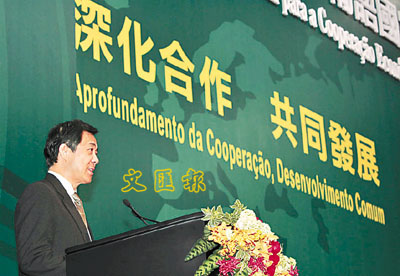 由中國政府主辦、澳門特區政府承辦的《中國-葡語國家經貿合作論壇(澳門)》第二屆部長級會議今日在澳門舉行。國務委員兼國務院秘書長華建敏、商務部長薄熙來、澳門特區行政長官何厚鏵以及來自葡語系國家的部長們出席會議開幕式。