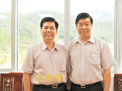 ■雲浮市市長歐真志(左)與本報總經理仇學忠合影。本報雲浮傳真