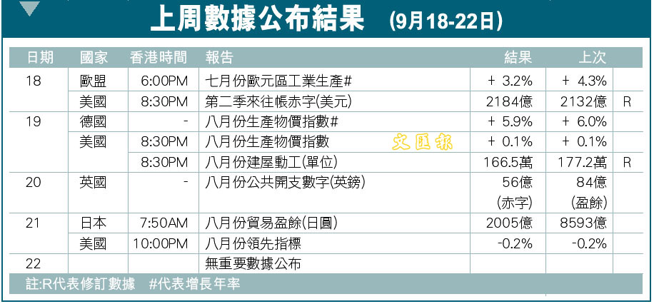 本周數據公布時間及預測 (9月25-29日) (圖)