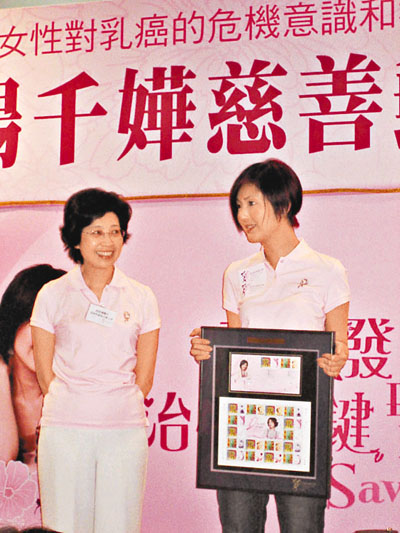 ■楊千嬅支持乳癌基金會,發行「楊千嬅慈善郵票集」。本報實習記者呂雪如 攝
