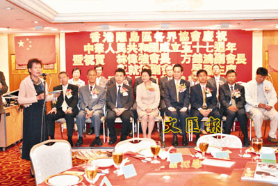 ■賓主在香港離島各界協會國慶晚會上合照,周轉香主席致辭。