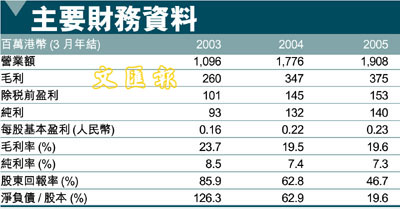 港資電子生產商金寶通(320),主要從事研究、設計及生產電子控制及自動化儀器,產品應用範疇包括(1)大廈及家居、(2)家用電器及(3)工商業電子控制產品,去年各佔集團06年度營業額為55%、31%及15%。公司的產品主要分銷海外市場,74%收入來自北美市場,歐洲佔約16%,餘下為亞洲。集團大部份生產工序主要由外判生產商負責,而近4成產品則由集團位於深圳廠房生產。