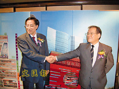 ■嘉里朱葉培(左)與有憲一握手互賀簽約MegaBox。