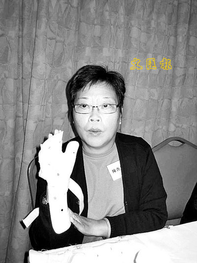 ■類風濕關節炎患者陳杏芳,每晚需要戴手托固定手指,以防彎曲。實習記者呂雪如 攝