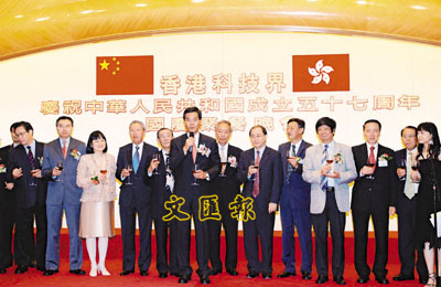 【本報訊】(記者 葉詠儀)香港科技界慶祝國慶籌委會昨晚舉行「慶祝中華人民共和國成立57周年國慶聚餐晚會」,中聯辦副主任王鳳超、外交部駐港副特派員解曉岩、特區政府環境運輸及工務局局長廖秀冬,以及眾多香港科技界精英歡聚一堂,場面熱鬧。
