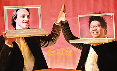 ■You Tube網站由「充滿創意的赫爾利(左)與陳士駿(右)創作,玩轉人腦電腦的界限。美聯社
