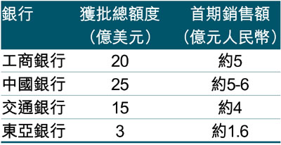 【本報訊】外電消息指,幾家獲得中國QDII(合格境內機構投資者)投資額度的銀行已完成了首期產品的銷售工作,募集資金總額約16億元人民幣。