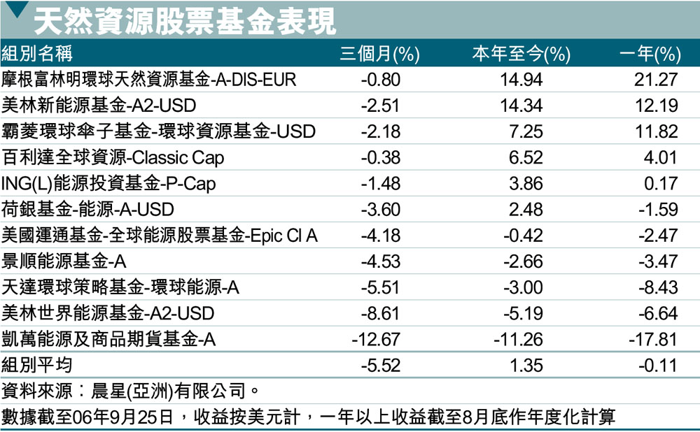 天然資源股票基金表現 (圖)