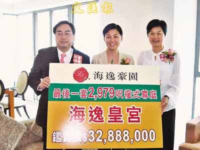 【本報訊】(記者 張以正)長實助理顧客服務經理戴美玲昨日宣佈,旗下紅磡海逸豪園頂層複式單位,現僅餘一個位於第16座39樓,室內面積2,979呎,4房2廳連特大主人套房及家庭室設計,現以3288.8萬元推售,呎價為1.104萬元,較年初時提價5%。