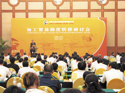 ■「加工貿易梯度轉移研討會」昨日在長沙舉辦。