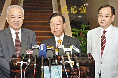 ■3個被選為先導計劃地區的區議員主席,均歡迎政府下放權力予區議會。左起:黃大仙區議會主席黃金池、屯門區議會主席劉皇發、西貢區議會主席吳仕福。 本報記者李志樑 攝