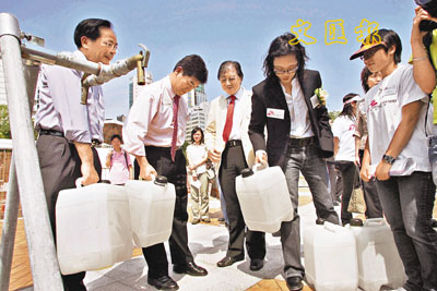 為使香港市民能夠親身感受到第三世界國家難民生活情況,無國界醫生昨日在舉辦一個展覽,並邀請一班政界人士出席。大會安排出席嘉賓體會難民設施,包括:居住在帳篷內情況,以及挑水生活環節。各出席嘉賓都指出,香港生活條件相當之好,更不會胡亂浪費冷氣、食水,珍惜資源。 無國界醫生提供圖片