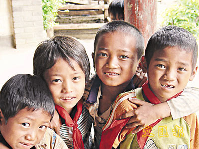 ■雲南佤族農村的兒童一臉天真。 高玲 攝