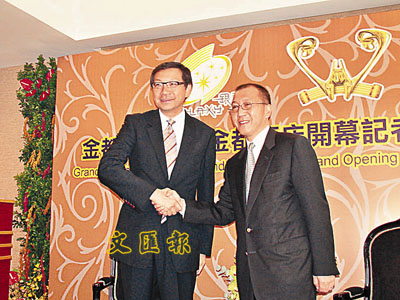 ■呂耀東(左),旁為鍾少樺。 本報記者 章佳強 攝