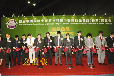 由中國中藥協會主辦的第一屆「中國國際中藥原材料暨中醫藥品、保健品(香港)展覽會」,昨起一連三日在亞洲國際博覽館舉行,同場舉行「走出去、請進來」高規格中醫藥論壇。原國家食品藥品監督管理局副局長任德權、國家中醫藥管理局國際交流合作司司長沈志祥、北京同仁堂集團黨委書記田大方、中國保健協會副秘書長賈亞光及本報總經理仇學忠等主禮嘉賓為展覽剪綵。沈志祥並代表國家中醫藥管理局局長佘靖致賀詞。