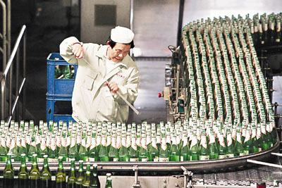 ■內地的勞工、電力及原材料成本不斷增加,「中國製造」產品的出口價難免被提高。圖為內地啤酒廠的生產線。 彭博通訊