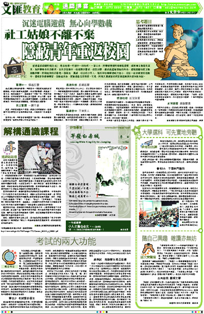 阿傑的人生路上,仍會遇上很多困難,但是,我相信這次「告別隱蔽」的體驗會成為他的寶貴經歷,教他更能積極的去面對往後的困難。阿傑令我相信,凡事總有希望,只要堅持,不隨便放棄,盡力去嘗試,總有一日會見到曙光。 ■基督教女青年會學校社會工作服務 靜藍