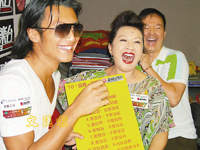 另家燕姐又送上「好夫妻十誡」寄予霆鋒和柏芝婚後要相親相愛,但霆鋒聞得第四誡是「要支持,不可支配」後即笑謂:「嚇死我,還以為說是不可交配,那我怎樣呀!」家燕姐也連忙笑說:「可以交配,可以交配,只是不好支配吧!」霆鋒才帶笑說:「係我中文不好!」今次閃電式結婚,其實他跟柏芝早有共識,不過柏芝曾反問他會否擔心如公司所講男藝人要給fans留有幻想,不能結婚?但他從沒此想法,所以趁兩年來唯一的假期便籌備婚禮,而其實很多朋友也一早知。