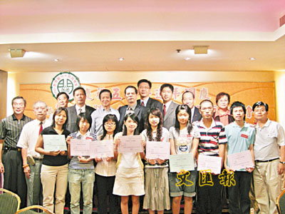 ■賓主與榮獲獎學金的眾學子合影。 本報記者喻淑琴 攝