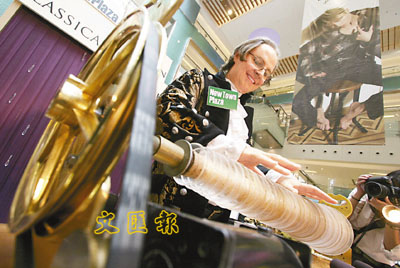 為迎接黃金周和中秋節的超級消費旋風,新城市廣場邀請美國的國際級演奏家William Zeitler首度來港獻藝,以罕有的玻璃琴演奏古今名曲。 本報記者梁祖彝 攝