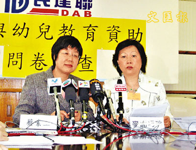 負責調查的民建聯立法會議員蔡素玉指,現時全日制幼稚園每月學費一般近5,000元,收費較低的也需3,000元,基層市民實難以負擔,自然對生育卻步,「兩名子女已需要付6,000元,未計算租金膳食費用,根本沒有可能負擔得起。」她表示,政府應向每名學生提供每月2,500至3,500元的資助,當中涉及的額外資源為17億至18億元,同時也要幫助幼稚園教師提升資歷,在減輕家長經濟負擔之外也提升教育質素。