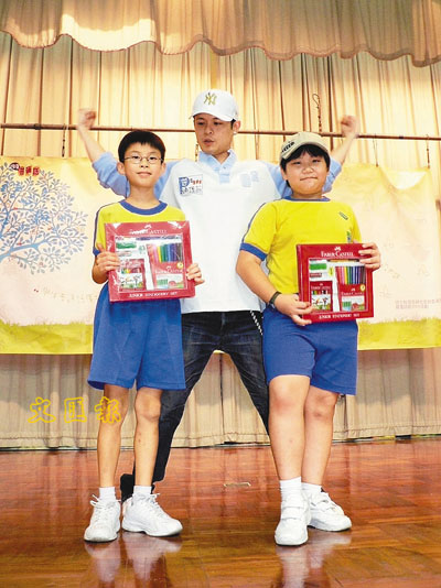 【本報訊】(記者 李思穎)側田、Sun Boy'z昨日前往藍田一間小學出席港台「普通話節2006—新人類移動大舞台」活動,分別與一班學生猜燈謎,示範普通話急口令、朗誦詩歌,可是他們的普通話程度,Sun Boy'z僅半桶水,側田連聽都聽不懂,相較學生們的水準,可說是自慚形穢。
