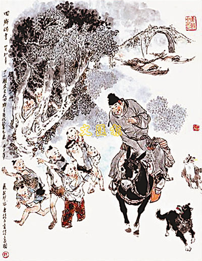 ■戴敦邦所繪賀知章《回鄉偶書》詩意圖。