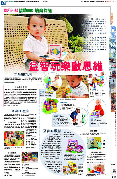 事實上,只要多嘗試讓寶寶接觸不同事物,並為孩子提供一個愉快的學習環境,這對訂下寶寶的學習能力基礎上有一定幫助。坊間有不少專為寶寶而設的玩具產品、教材產品及幼兒課程,為各爸爸媽媽提供培育寶寶的好方法。