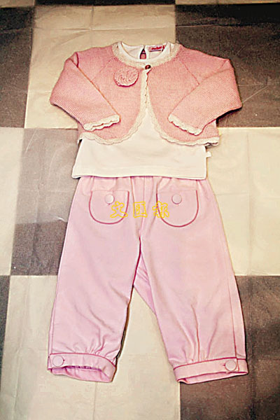 Cacharel粉紅冷外套($690),內裡加件Tea Time白T恤($490),襯條粉紅棉質長褲($690)。(b)