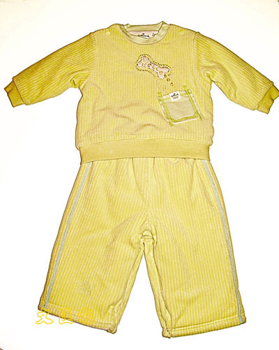 Hallmark Babies 粉黃色蝴蝶結上衣($198)加長褲($218)套裝。(c)