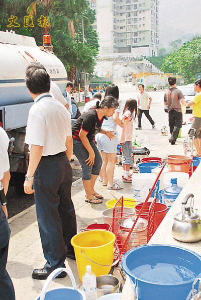 水務署派出流動水車運送食水到該兩個受影響屋苑和仁安醫院,提供食水服務,該兩個屋苑的居民於早上持水桶,水樽和水煲等器皿到樓下空地,等候水車前來取水回家供洗臉,漱口,煮早餐等用途,部分居民為取得更多水應用,尤其趕上班者不惜舉家出動取水,情況相當狼狽。
