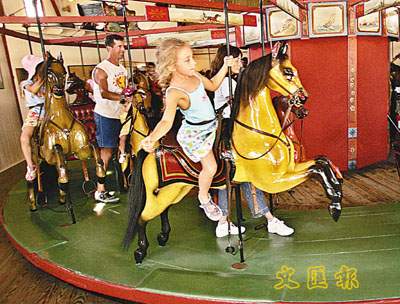 飛馬旋轉木馬場助理經理雅蓋爾斯基表示:「這個旋轉木馬場由戴爾在紐約科尼島興建,到1884年,整個旋轉木馬場遷移至馬撒葡萄園島。在1986年,馬撒葡萄園島保護古蹟信託基金購入旋轉木馬場。」(業欣)