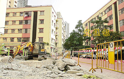 ■模範h正進行維修工程,更換地下喉管。本報記者高仲明攝