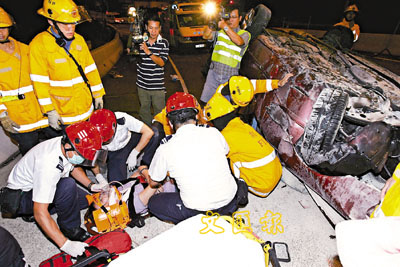 ¡@ÀG¹D¾û¤Î¨ä¥L¾r¾p¤H¤h¨£ª¬¡A°¨¤W¤W«e¨ó§U¦U¶ËªÌÂ÷¶}¨®´[¡C®ø¨¾û¨ì³õ«á¡A±N«¶Ëªº¶ËªÌ±Ï¥X¡C¨ä¤¤¤@¦W¤k¶ËªÌ¡A¶Ë¶Õ»á«¡AÀY³¡¬y¦å¡A§e¥b©ü°gª¬ºA¡C¦Ó»F¨Æ¨p®a¨®ÄY«·l·´¡A¨®§À½c¼u¶}¡A«á³Æü¸¸²æ¡A¨®¤ºÂøª«´²¸¨¦a¤W¡C¨Æ«á¡A¨ü»´¶Ë¥q¾÷±µ¨ü°sºë´ú¸Õ¶W¼Ð³Q®·¡Aã¥H2¤d¤¸«OÄÀ¥~¥X¡A¤U¤ë13¤éªð¸p³ø¨ì¡C