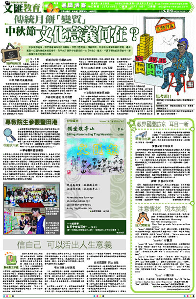 另外,月餅原本僅是節日的點綴,如今卻仿佛成了中秋節的全部,到底中秋節所追求的文化意義是甚麼呢?是物質還是傳統文化?過去我們所吃到的月餅可謂簡單樸素,而現在的月餅雖然包裝得相當豪華,卻漸漸變成了純禮品。中秋節本身的意義不就是「團圓」嗎?過中秋節不僅是娛樂、好玩,還是一個傳承優秀文化傳統的機會。當中秋淪為美食節、購物節,就確實失去了它原有的味道。
