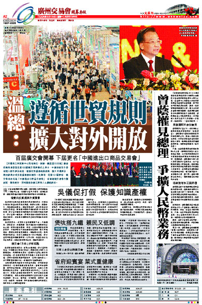 據悉,在廣交會開幕式結束後,溫家寶總理率領曾蔭權、何厚鏵等人參觀琶洲國際會展中心。