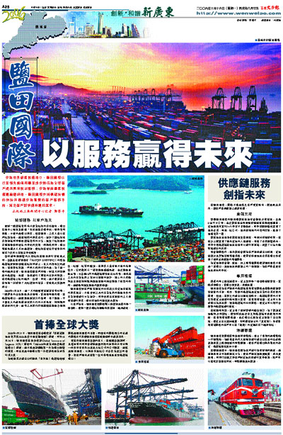 當韓進海運運營的大型船舶在鹽田舉行首航儀式時,參觀嘉賓看到標有「HANJIN SHIPPING」的藍色集裝箱齊刷刷環繞在船舶甲板上,巨大的岸吊忙碌起吊,場面恢弘壯觀。然而人們所不知的是,為了這一幕的順利出現,鹽田國際應客戶所需,對當天所要調度的集裝箱、吊機、拖車進行了周密的安排和策劃,包括集裝箱上船的順序、位置、時間,這才使得客人在登輪一刻看到了新船裝卸的場景,首航儀式壯觀而成功。