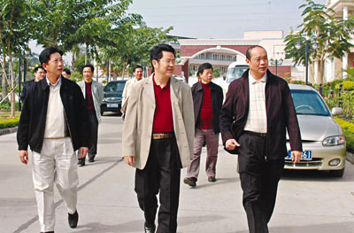 ■市委書記劉志庚(中)在鎮書記陳浩林(左)、青湖工業園董事長尹德明的陪同下視察工作(右)