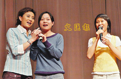 ■中國戲曲梅花獎得主、紹興小百花越劇團的吳鳳花與復旦大學的同學同唱越劇名段「梁祝」 (袁雲攝)