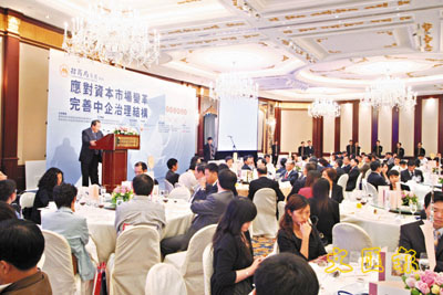【本報訊】為期兩天的「應對資本市場變革 完善中企治理結構」論壇昨日假港島香格里拉酒店開幕。國務院國資委副主任邵寧率地方國資委、中央企業和地方國有企業代表等110多人與香港金融、證券、商會等90多位代表聚首一堂,就內地企業如何應對資本市場最新變革展開研討,並對相關法律、財務、媒體公關等方面的運作技巧和實務經驗進行交流。