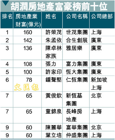 許榮茂 居胡潤地產富豪榜首 (圖)