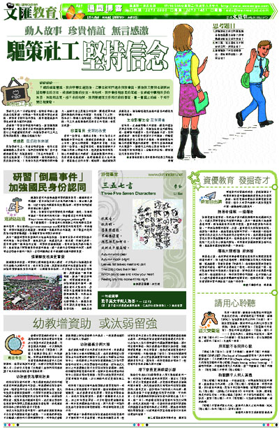 多年來,正是這些動人的畫面、感謝的聲音支持著我每天的工作。我認為生命真的影響生命,在輔導的過程中,我不單是施予者,我亦是受助者。因我從中獲得不少的提醒,亦能從服務使用者身上學到不少東西,如面對逆境的能力和積極樂觀的態度等。現時社會福利制度的大轉變下,縱使社工的路上將會崎嶇不平,我相信只要堅持信念,定能有所出路,還要謹記凡事要有盼望啊! ■香港基督教女青年會學校社會工作服務 清言