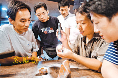 ■壽山石收藏熱的興起,使壽山石之鄉福州的藏天園、特藝城等多處壽山石與市場人氣興旺。圖為專家義務講解壽山石鑒賞知識,吸引了不少收藏愛好者。本報記者鄭祚聲 攝