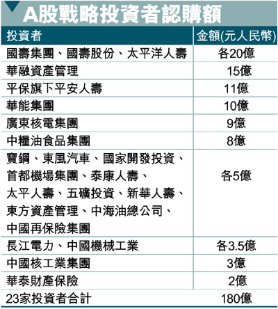 A股戰略投資者認購額