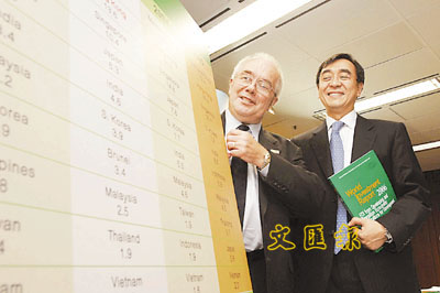 ■盧維思(左)與王于漸在記者會上公布《2006世界投資報告》結果。