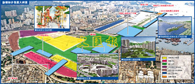 【本報訊】(記者 羅敬文)港府修訂後的啟德規劃發展藍圖曝光,貫徹「零填海」發展郵輪中心,落實發展開合式天幕的體育場館,並把沙中線車廠剔除在啟德發展之列,以免有礙九龍城區的通風。消息人士又表示,港府擬在跑道末端興建高200米的地標式建築,設有觀景廊讓遊人居高臨下,觀賞維港兩岸景致。