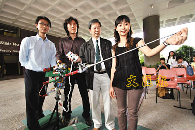 美國機械工程師學會,每年都會舉辦國際學生設計競賽,目的是給大學機械工程系的學生發揮工程設計才能,今年大會的題目是為傷殘人士設計自動釣魚工具。 香港代表要參加下月在芝加哥舉行的總決賽,先要在亞太區分組賽打敗來自日本、澳洲、新西蘭、印度、台灣、歐洲、南非、南美洲以及中東國家等十多個國家或地區的參賽隊伍,結果由理大機械工程系學生梁志鵬、古中威、楊煒瑩組成的港隊取得出線權。