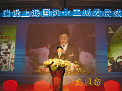 ■上海市金山區區委書記李毓毅參加上海國際化工城發展成果展示會。 本報實習記者趙錚 攝