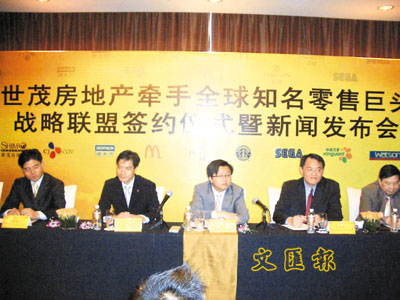 ■世茂房地產昨日與八家世界零售巨頭簽訂戰略合作協議。 本報上海新聞中心實習記者趙錚 攝